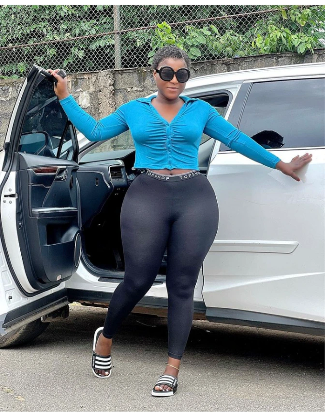 Popular Nigerian Actress, Destiny Etiko has recently shared lovely new photos on Instagram which has got many of her fans talking. Destiny was seen in a nice outfit, which enhanced her beauty, as she posed behind her luxurious vehicle which she acquired recently. The photos has gotten over a thousand likes and comments in just a few hours of publication.