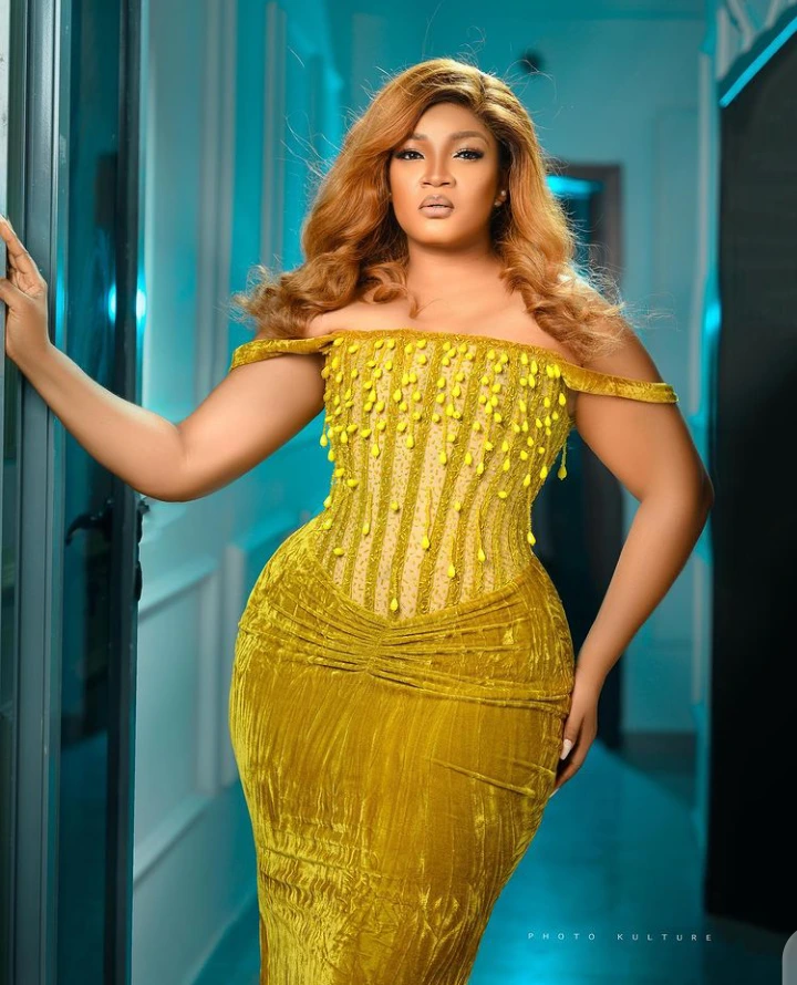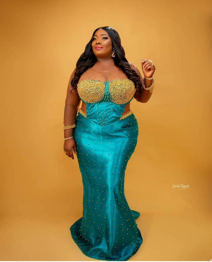 One of the popular actresses, Mercy Aigbe is an actress who never jokes with her body maintenance and beauty. Mercy is 44 years old, but her body look says otherwise, she can pass for a under 20 lady. Mercy Aigbe who is also known as an owanbe queen knows the kind of outfits that compliments her beauty and stature.