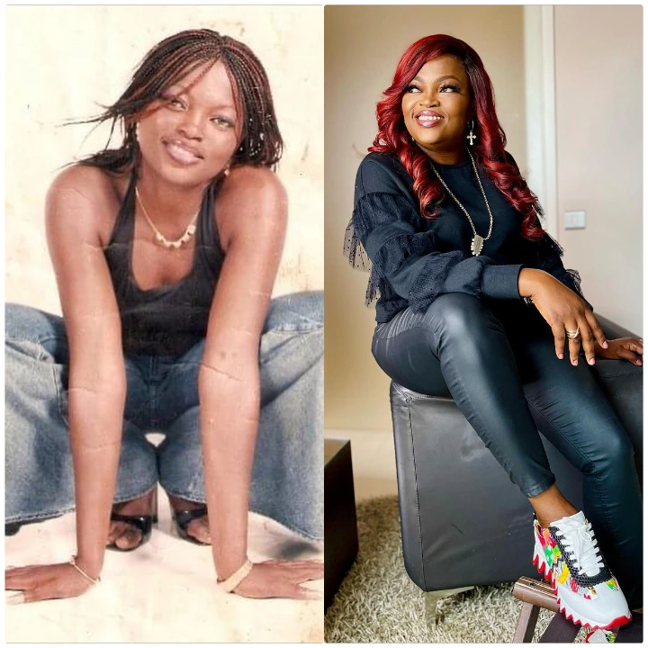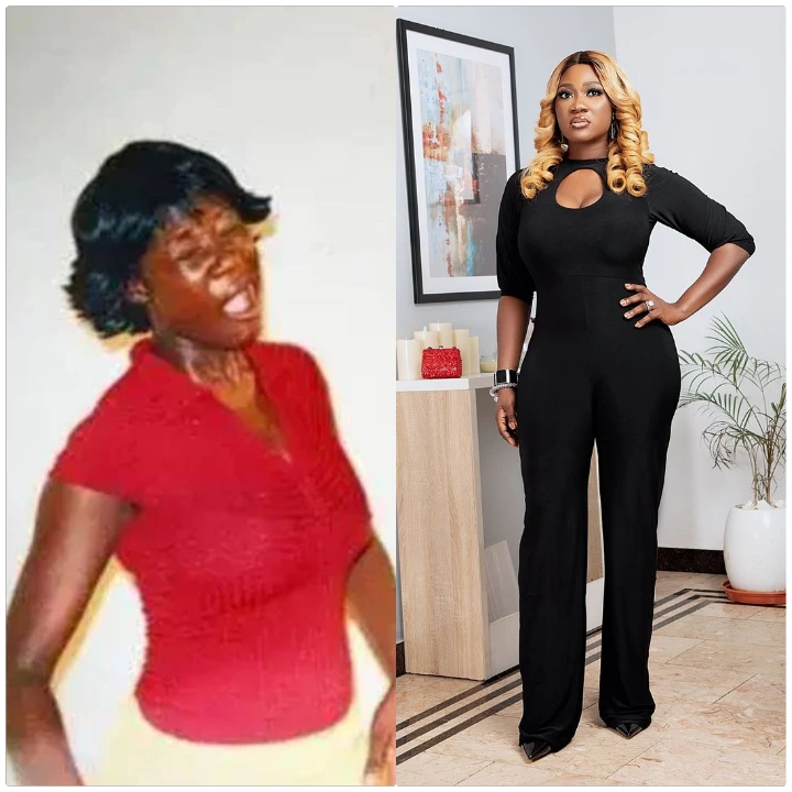 Some throwback pictures of popular Nigerian actress, Funke Akindele have surfaced online, these pictures have gotten mixed reactions from entertainment lovers as she has transformed into a more classy and beautiful woman. Below is a picture of the movie star, that compares her old look and her present appearance.