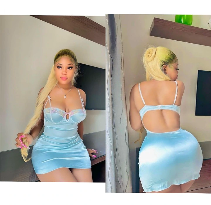 The beautiful actress who loves wowing wowing her fans with pictures of herself, this time around adorable pictures of herself wearing a beautiful light makeup in her face, a stylish blue coloured gown and a nice hair which gave a notable look of elegance. She took the pictures in different postures.