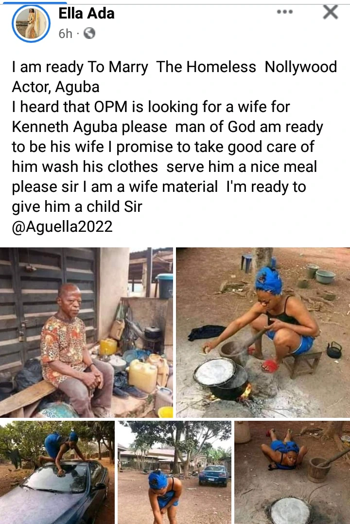 To prove her seriousness, a beautiful lady has tagged major reputable and verified social media platforms, while begging to be allowed to marry the popular veteran Nollywood actor Kenneth Jideofor (a. k. a. Aguba); who was recently discovered to be homeless.