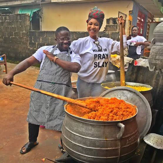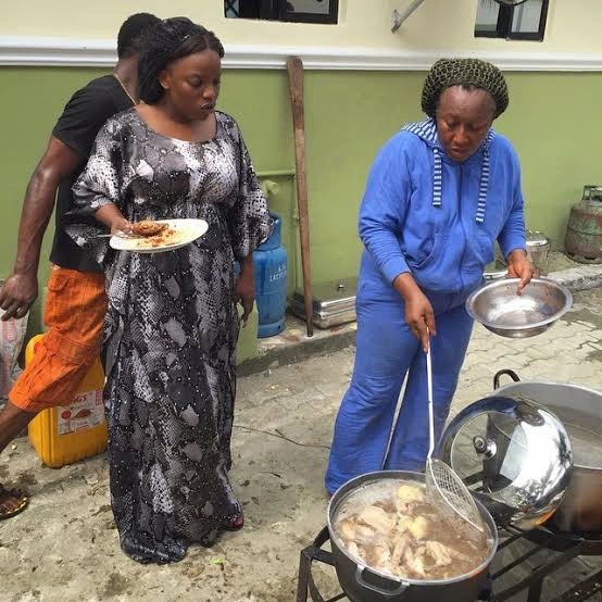 These are photos showing Omotola Jalade, Genevieve Nnaji, Toyin Abraham, Mercy Johnson, Annie Idibia, Mercy Aigbe, Regina Daniels, Funke Akindele, Ini Edo, Mide Martins, Oge Okoye, Empress Njamah, Patience Ozokwor Warri Pikin and Tonto Dikeh cooking.
