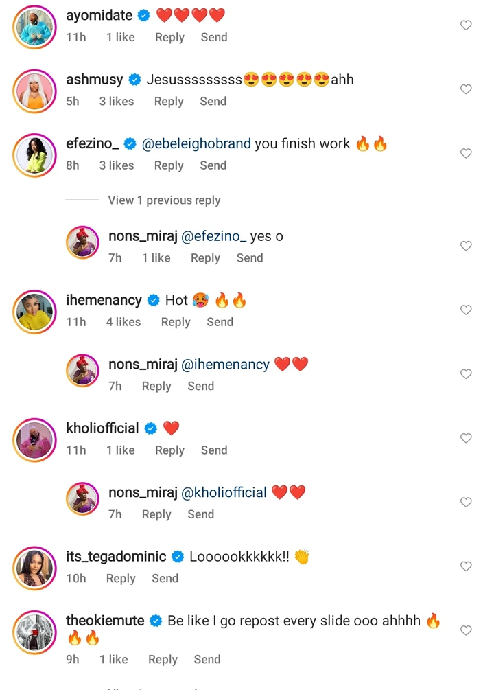 As expected, a lot of her fans, including celebrities following her page were mesmerized by her lovely outfit and they share positive remarks in her comments section.